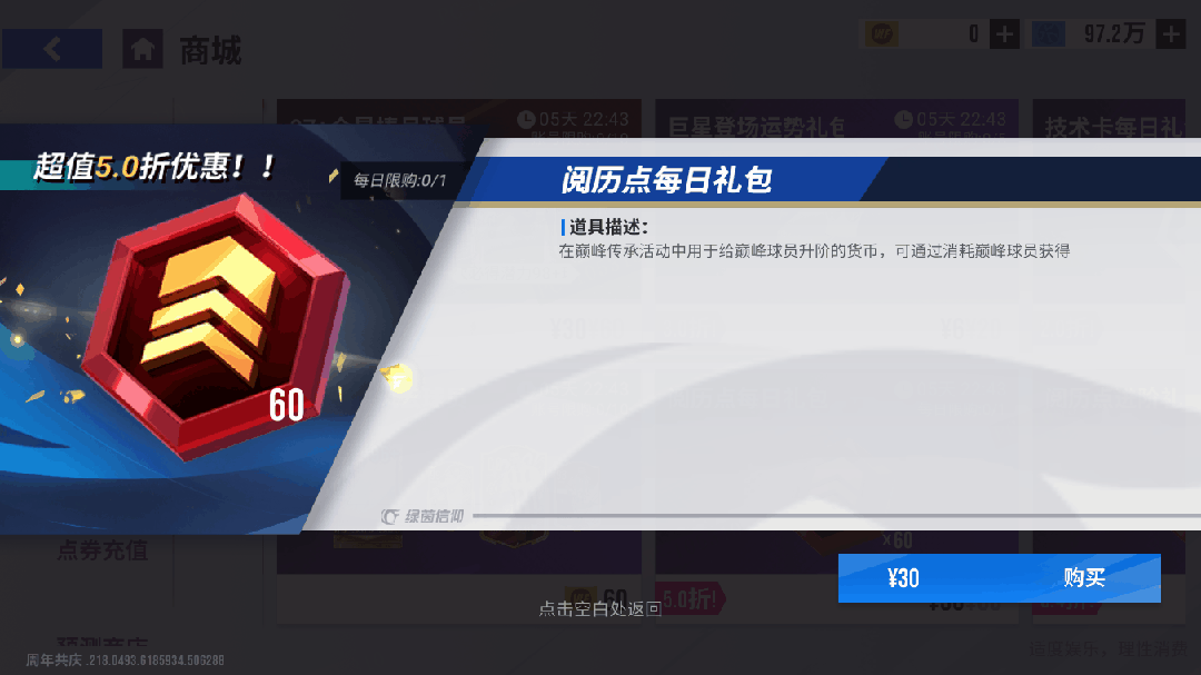 【阅历点每日礼包】每日限购1次,购买可获得阅历点*60,仅需30元!