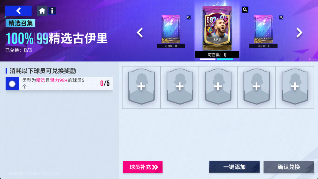 【99精选古伊里】阵容召集挑战将于2026年1月9日11时至2026年1月16日11时开启,活动期间累计可进行3次召集挑战,按条件使用指定球员进行召集必得【99精选古伊里】。