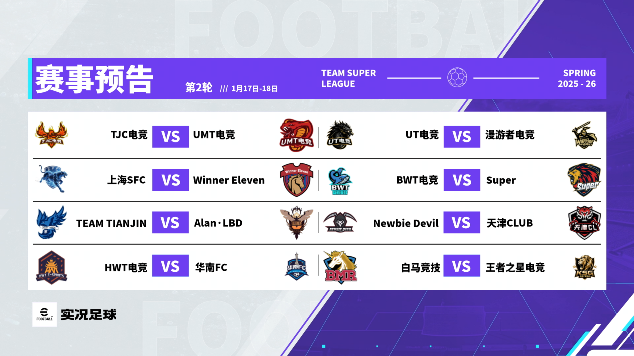新赛季第一周的比赛赛果可谓出乎大多数人意料,也足以看出战队超级联赛如今的竞争力之强,每支球队都有着强悍的实力,敢于和任何队伍过招,下周,TJC电竞与UMT电竞的对决可谓重头戏,几支升班马能否延续火热状态也值得大家关注。每周六、日晚19:00,锁定「实况足球」官方直播间,各大平台同步直播!新赛季热血开战,我们为下一球欢呼喝彩!