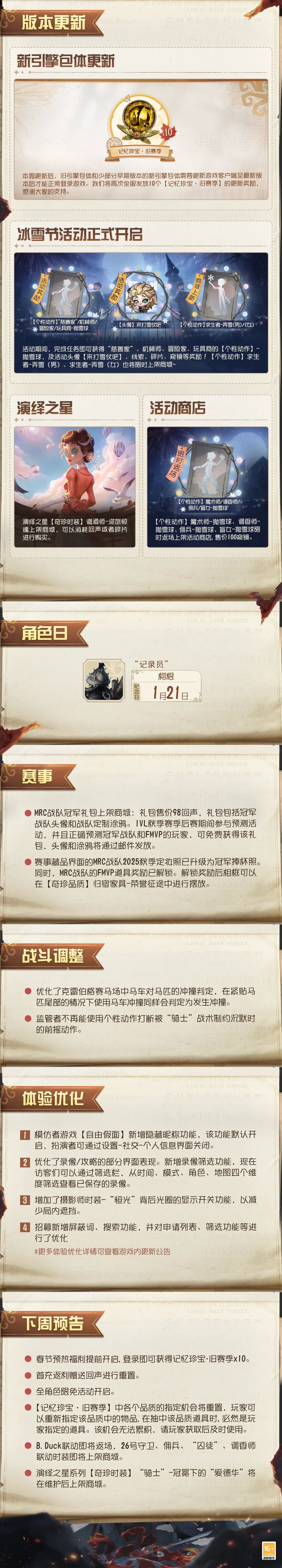 本周将采用不停服维护方式。7点30分服务器进入不停服维护状态,届时各位访客依旧可以体验大部分玩法和功能,包括但不限于:匹配、自定义、活动、推理之径等,商城的物品可以正常购买;