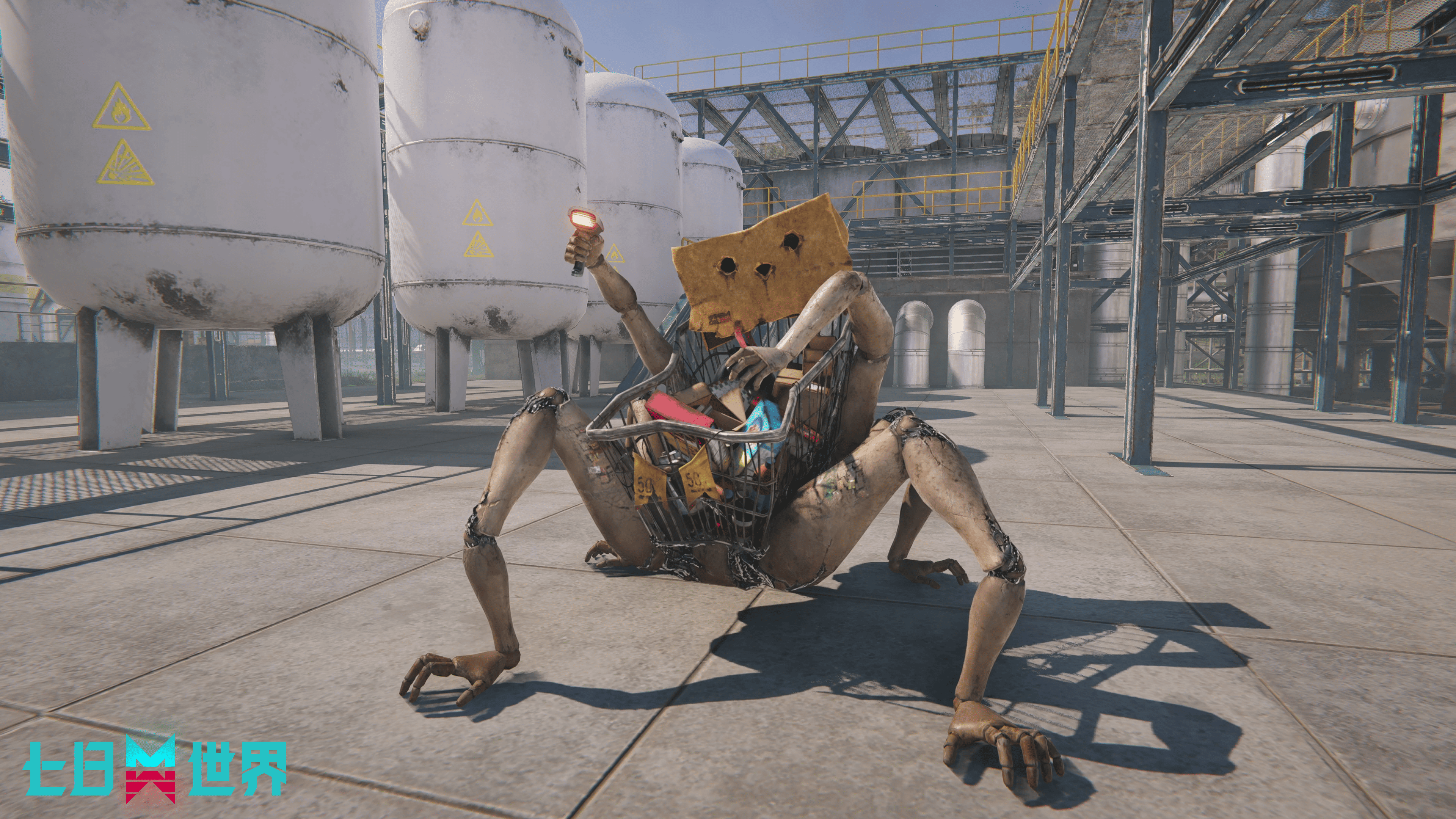 行为特征它似乎保有生前的囤积癖好,一手持商场扫描仪对环境进行周期性扫描,另一手拾取废弃物资并存入身后购物篮。超越者丢弃物品时,它也会将其拾起。此时它手中的扫描仪发出蓝光,无主动攻击性。