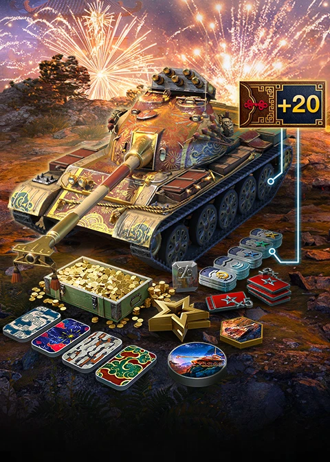 不远处礼炮齐鸣——夜空瞬间被烟花点亮,炸开满天华彩!打造如此盛景,需精湛技艺、周密计算与恰到好处的火药配比。而匠人们将更磅礴的爆破之力,倾注于他们的全新杰作:适用于VIII级WZ-132的专属传奇涂装“爆仗”登场。披上战袍,将怒火倾泻于敌阵吧!