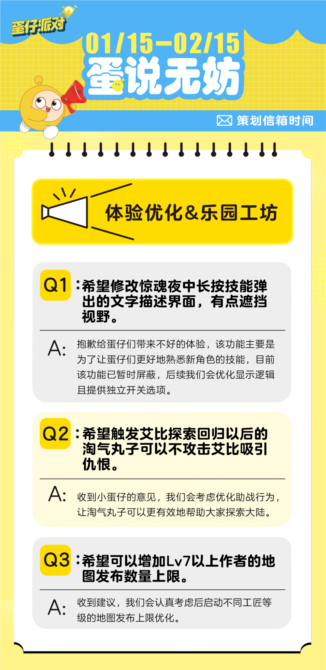 皮蛋都会为蛋仔们带来策划们的回信~