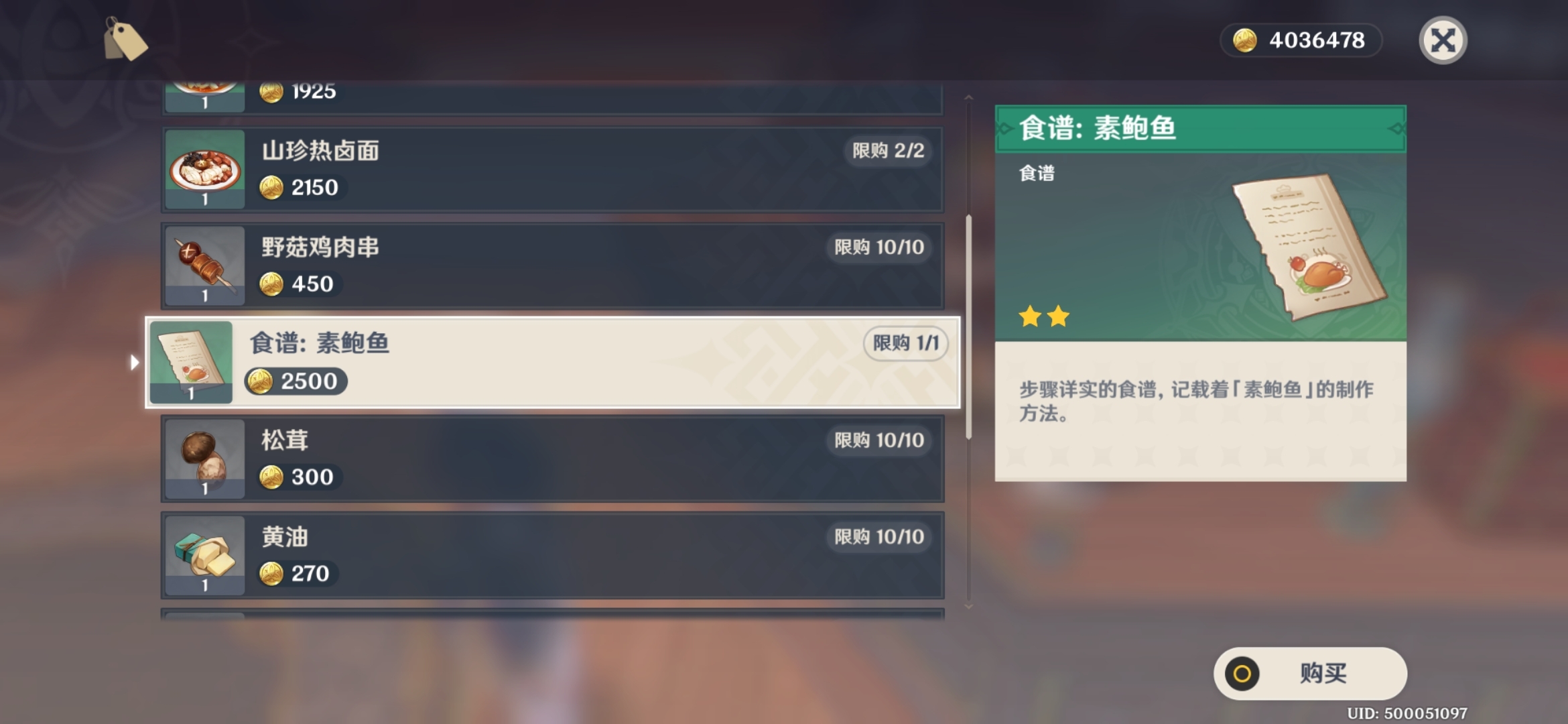 3.素鲍鱼(2星复活料理) 望舒客栈老板娘购买