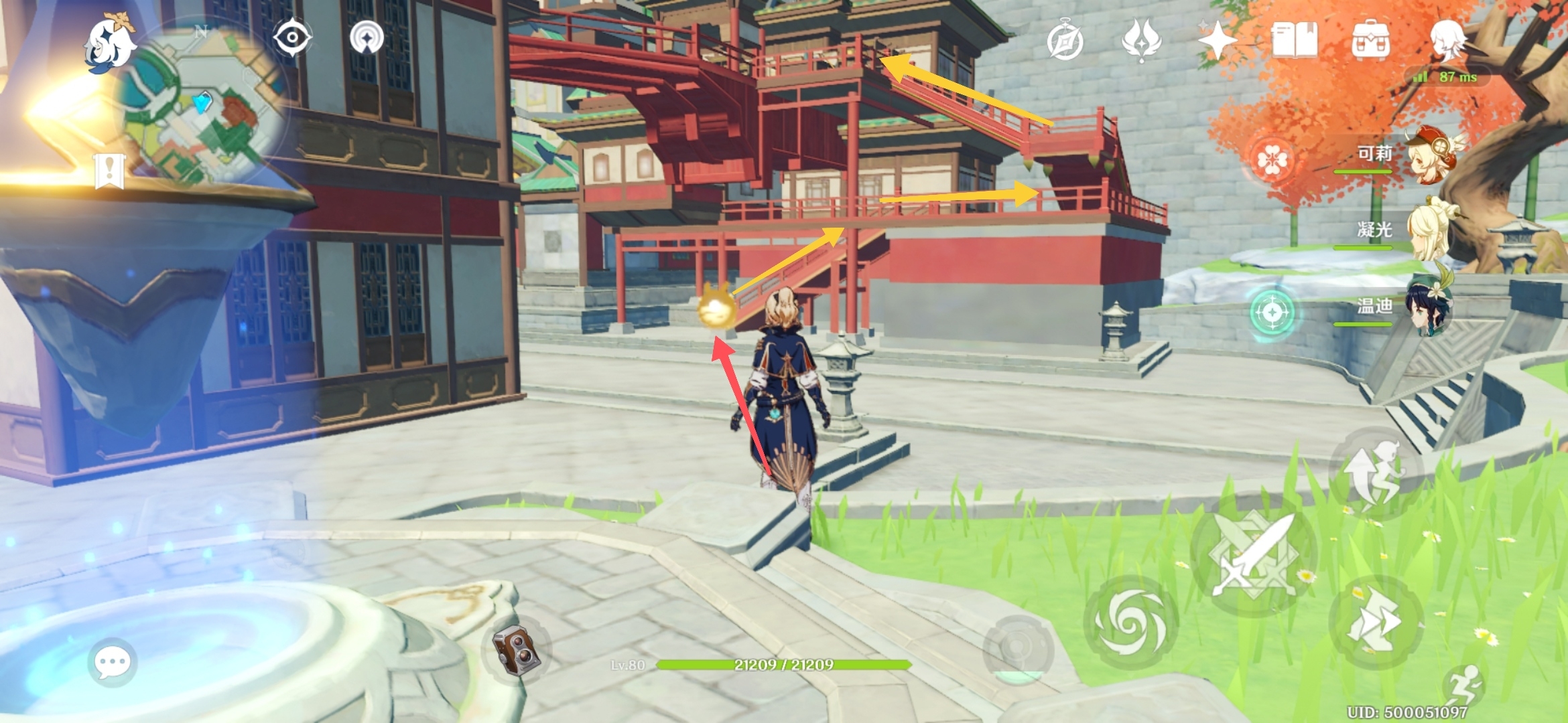 然后跟着箭头爬红色的楼梯上去即可