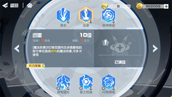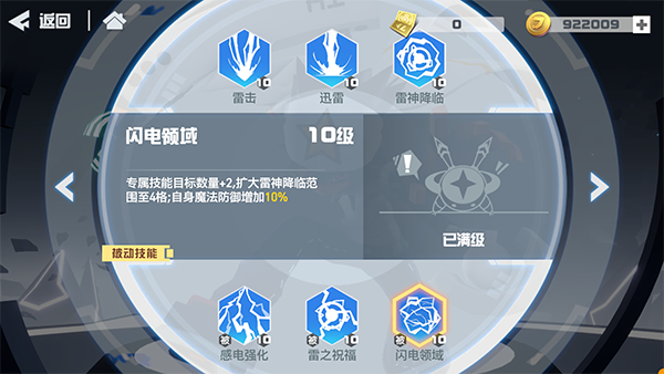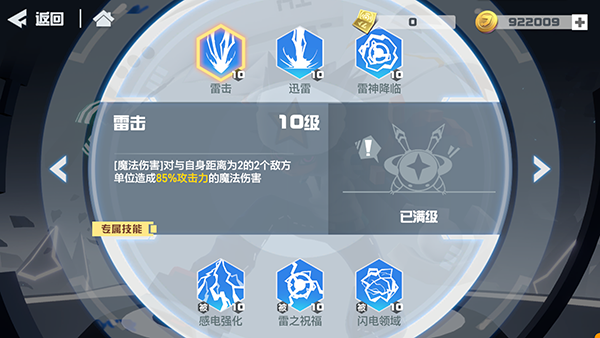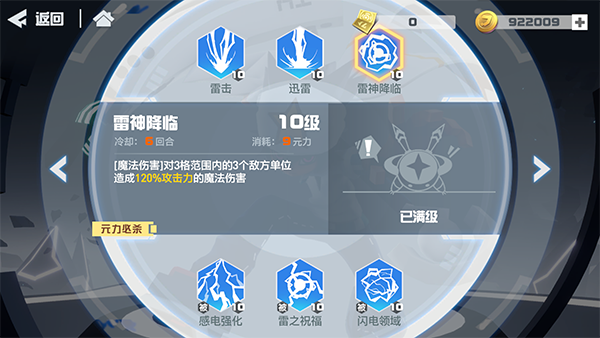 专属技能目标数量+2,扩大雷神降临范围至4格;自身魔法防御增加10%。