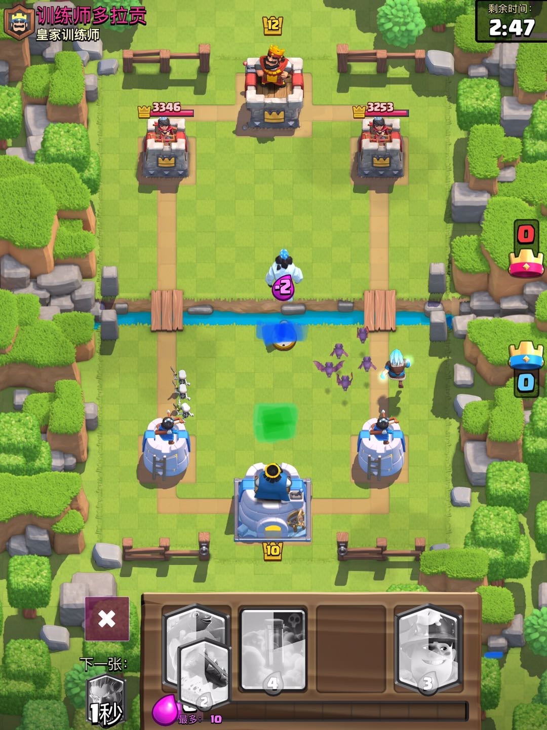 技巧:冰豆在防守屠夫时要下的够远,防止直接被打死,进攻时先桶后冰,这样可以让对手措不及防,不过遇到我玩速弩的,一个滚木全给他滚没。公主尽量不要散步,不然被法术直接秒杀了,等于白送对面一个公主。火箭可以直接砸掉电车,对面沉底建筑时也可以直接砸掉,顺带蹭血。