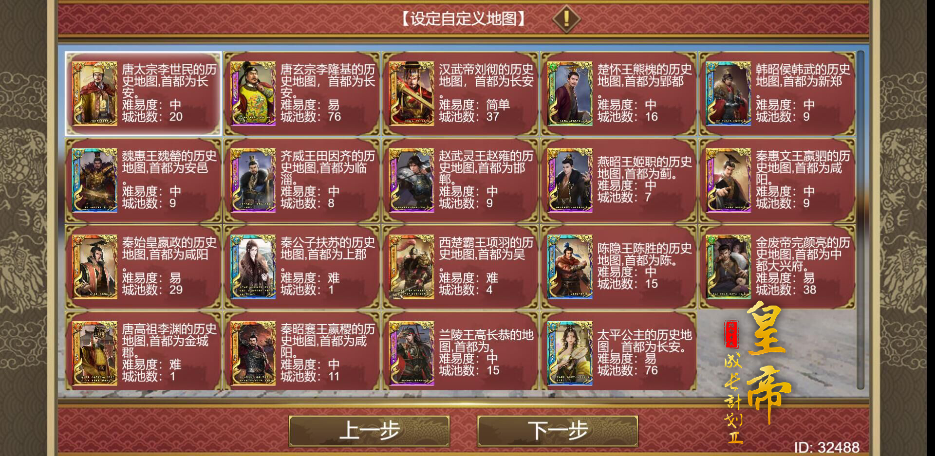 1、地图更新——地图进行了更新,合纵连横,烽烟再起!秦始皇-嬴政、西楚霸王-项羽、秦昭襄王-嬴稷、齐威王-田因齐、赵武灵王-赵雍、燕昭王-姬职、秦惠文王-嬴驷、韩昭侯-韩武、魏惠王-魏罃、秦公子-扶苏、陈隐王-陈胜、楚怀王-熊槐