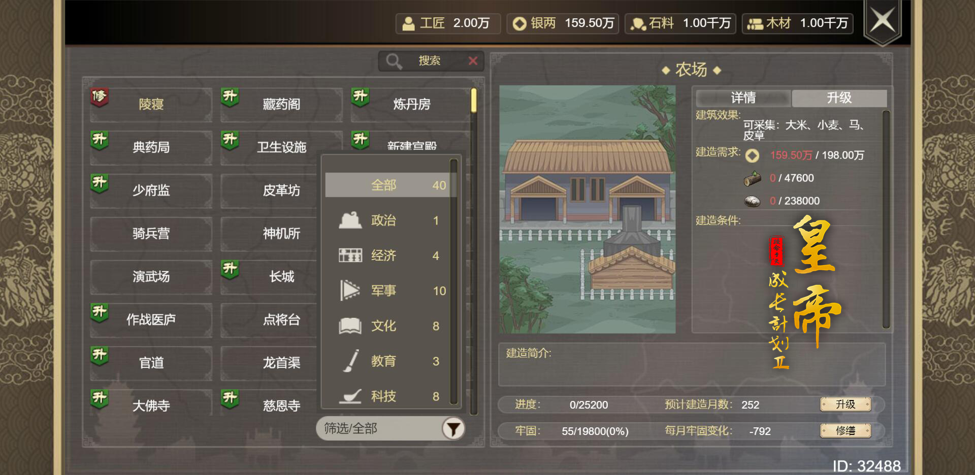 现在,可以决定每个建筑对应派遣的工匠人数了,派遣的工匠数量将会影响建筑的建造进度