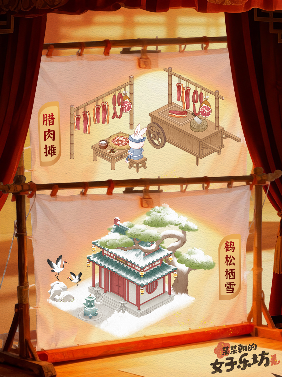 四、新装饰物:二十四节气系列主题之大雪——腊梅树、腊肉摊、鹤松栖雪