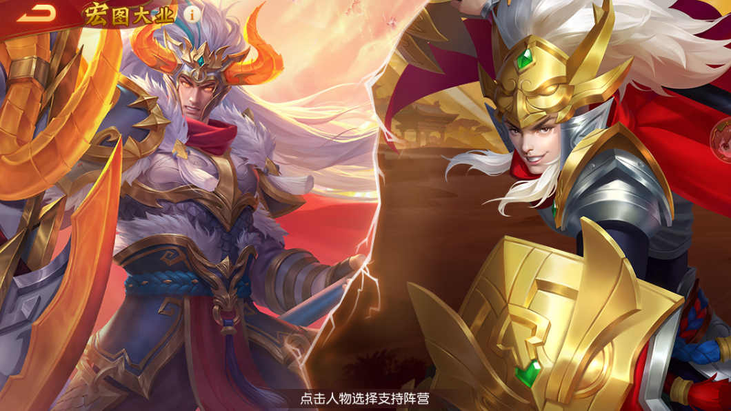 主公进入宏图大业活动界面后,可以选择其中一个阵营,选定之后在支持阵营的拼图没有完成之前不可更改,己方阵营拼图完成后可以给对方拼图捐献颜料。