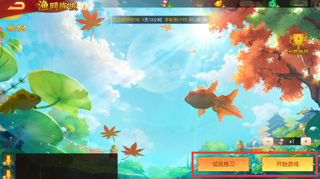 2、主公可以不消耗任何资源道具在【试玩练习】中体验玩法,也可以消耗垂钓券开启正式游戏(温馨提示:试玩练习不会记录游戏得分也不会获得任何奖励,其他限制条件和正式游戏一致)。