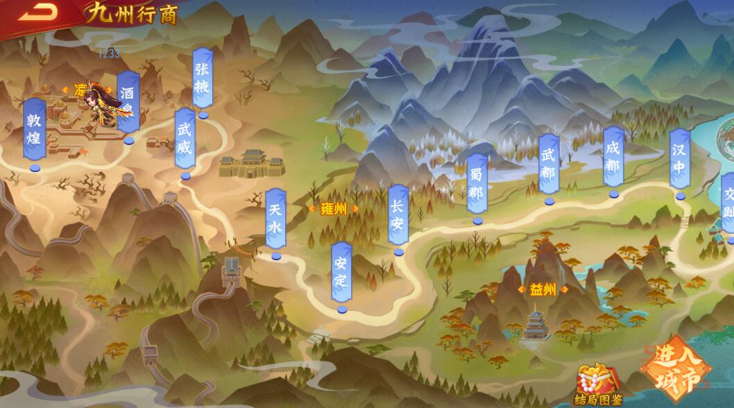 1、主公需沿地图既定路线推进,抵达任一城市后,均可进行经商交易。