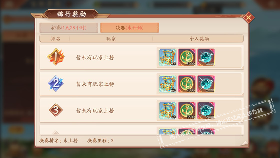 排行榜分为初赛排行和决赛排行,初赛排行在第2天24点结束,决赛排行在第3天24点结束,有意争夺排名奖励的少年请注意活动时间。