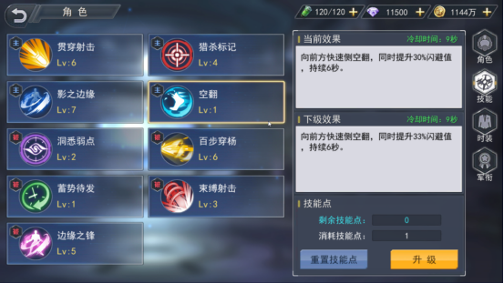 接着说一下伊娃的被动技能,伊娃几乎所有的被动都是为了进攻,除去以上所说的束缚射击和边缘之锋意外只有一个空翻不属于进攻性技能,空翻可以向指定方向翻出一定距离,并且在之后的一段时间内增加闪避效果。