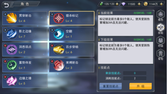 第二个技能是猎杀标记,释放技能会锁定五名敌人并标记,被标记的敌人无法躲避伊娃的攻击并且收到的伊娃的伤害还会增加,因此伊娃的命中是有保障的,可以选择将命中符文或者芯片替换成其他属性的符文或者芯片。