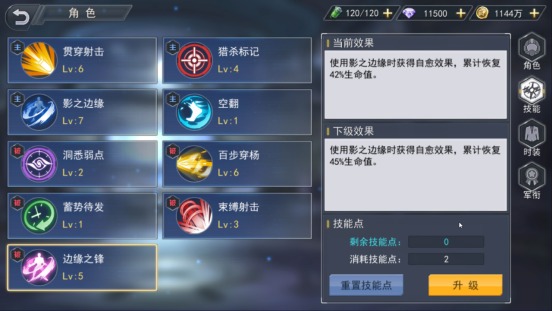 第三个是蓄势待发,停止攻击一段时间后下一次攻击会提升伤害,该技能也是为了影之边缘服务的,利用影之边缘的隐身找到合适的位置在各项伤害加成的情况下能够瞬间秒杀对手。