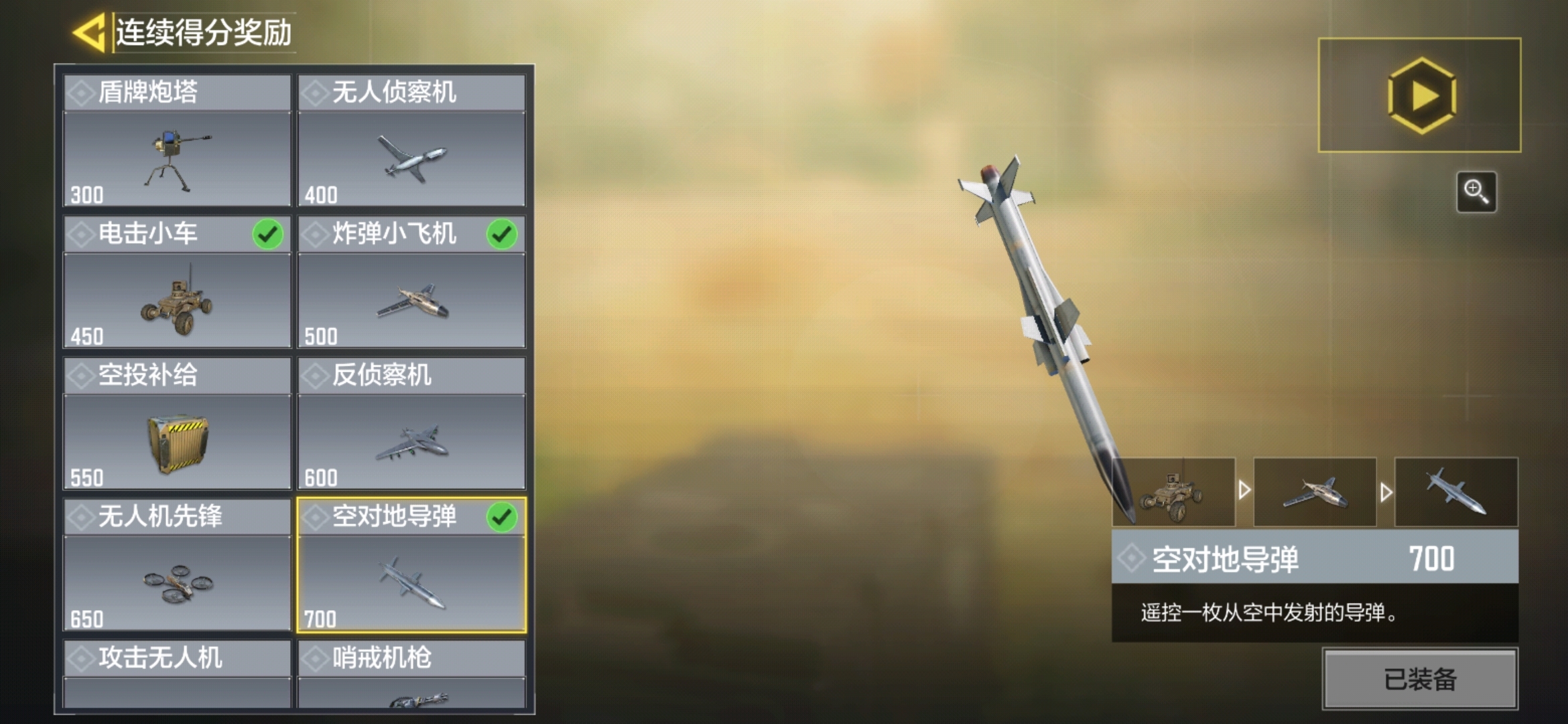 ③空对地导弹。