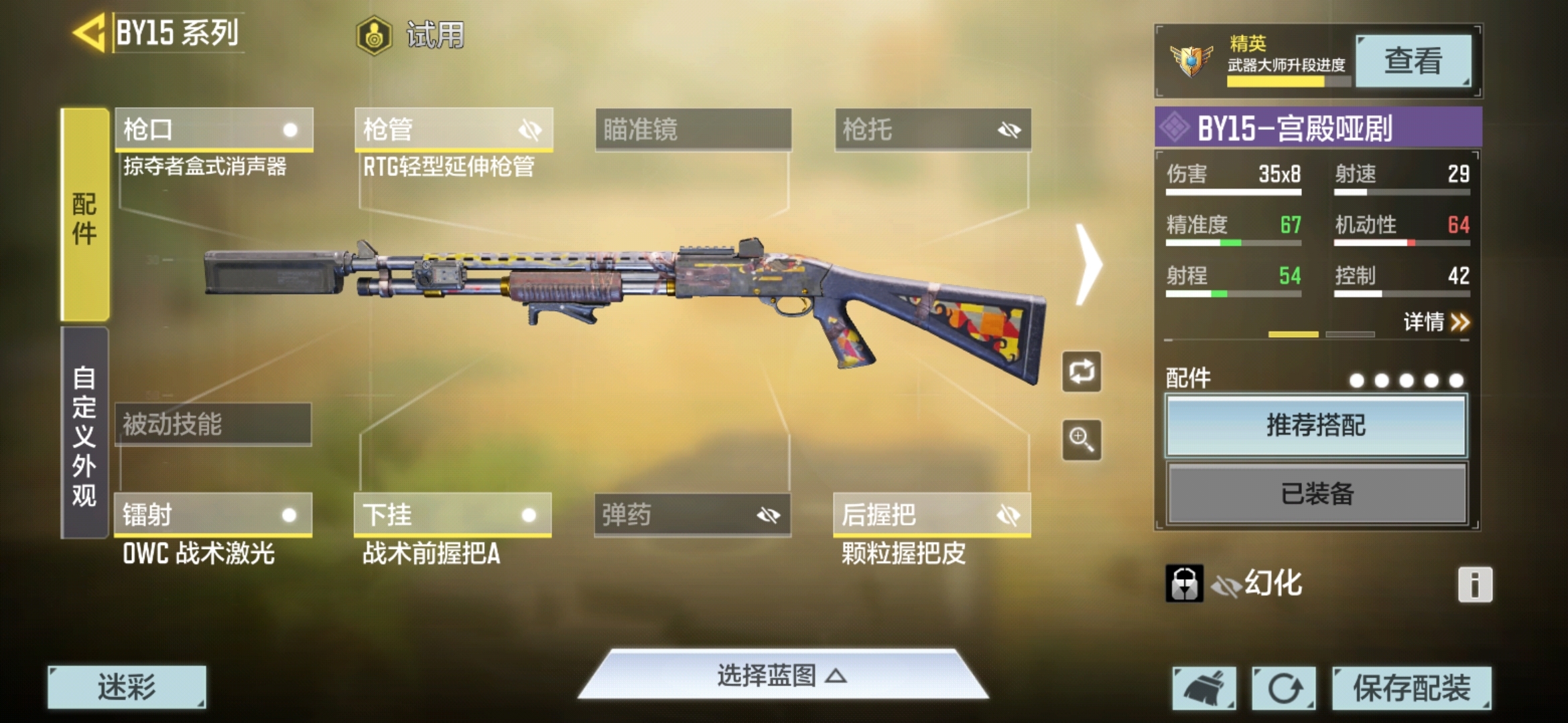 推荐使用by15的举镜流打法,可在20米以内有效杀敌