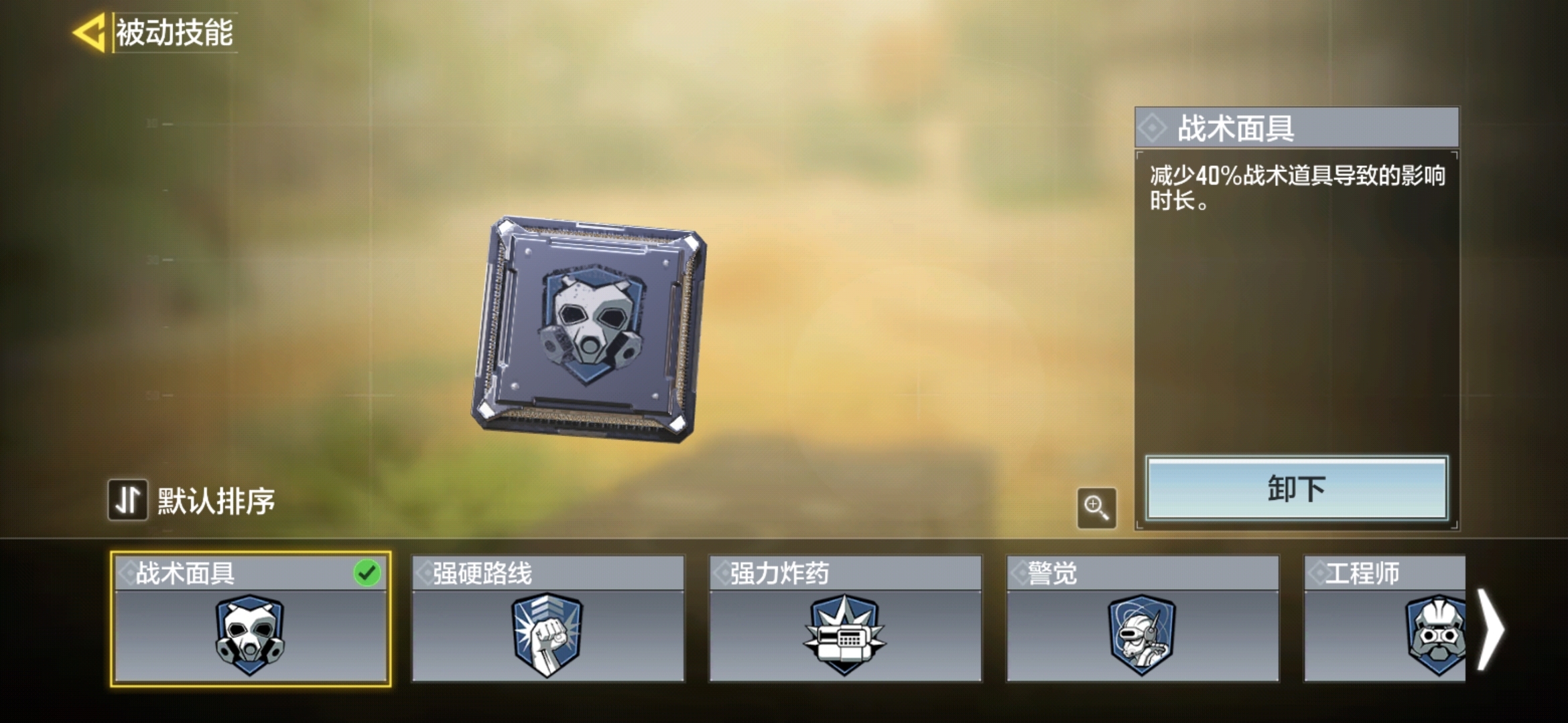 ①战术面具。战术面具的作用是减少40%的道具影响时长。防止中途被人预判丢震撼弹或铝热剂,从而阻止你。