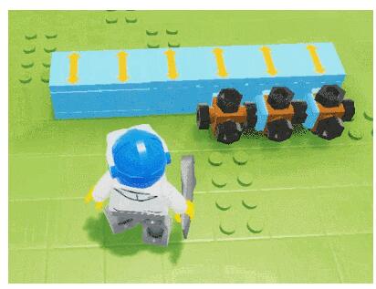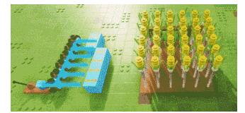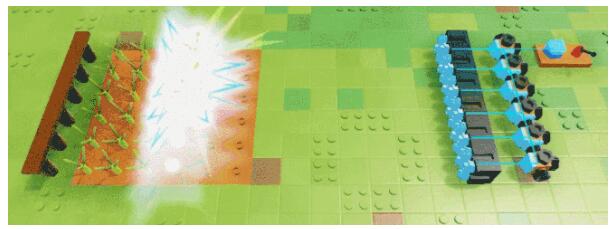 Step6:下面,让我们拉下拉杆试试效果~看,小鹅开头描述的自动播种机就实现了!注意,最后耕地快被填满之时,需要及时拉回拉杆。小伙伴们依照以上的原理,也可以自行扩展自动播种机的耕种规模。