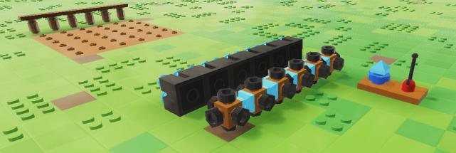 Step5:有的小伙伴可能会有疑问,滑动块到了另外一侧要怎么回来?没关系!我们再另外一侧也放置好一排启动装置就好了!但注意仍要隔开一段距离,避免滑动块把另外一侧的装置推开。