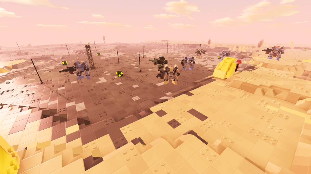 随处可见的垃圾废墟,残破的酒吧、汽车城、工厂,横七竖八的家具、载具、路牌,仙人掌,充满浓厚的西部电影片风格。匪首和沙虫BOSS不时在这里出没巡逻,也有少量的友善机器人会帮助来客。