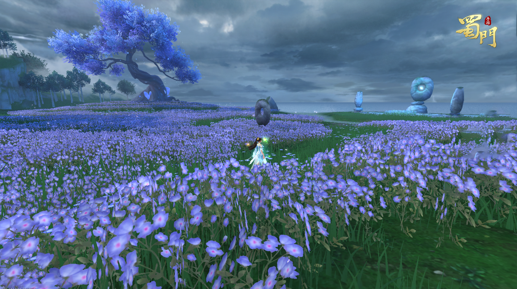 踏入这片新域,视线瞬间被无边无际的蓝紫色花海占据。