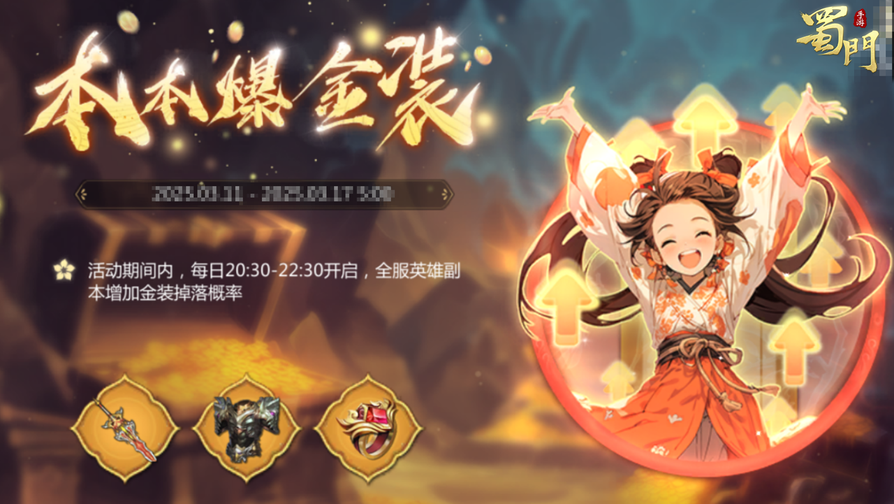 激战服金装掉率提升活动,掉落力度还会更大,三倍的概率更是让蜀友们真正实现本本爆金。开局就让你轻松获得顶级装备,战力飙升!