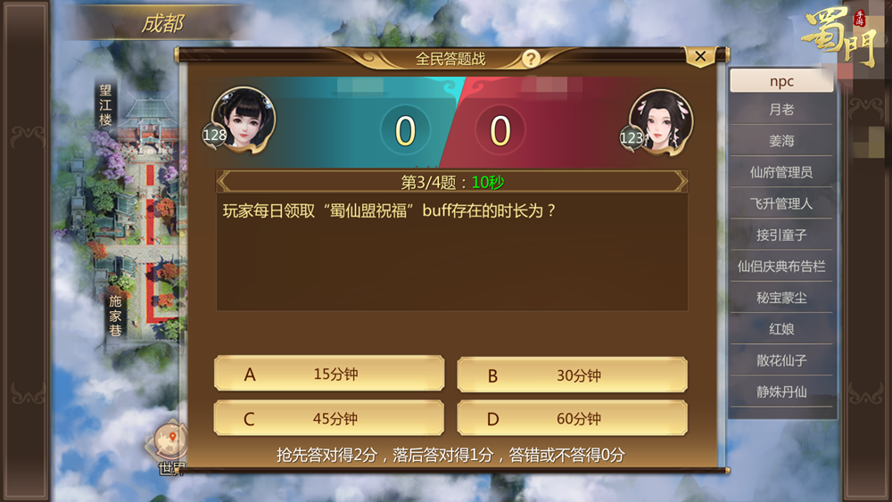 活动开启后,可通过点击主界面答题按钮或世界聊天频道进行答题,每日共4题,