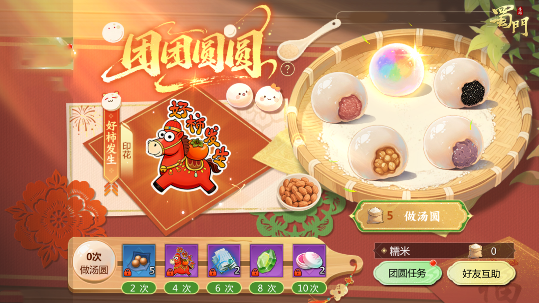 活动内容:每日完成任务获得面粉,即可合成汤圆。合成满足指定次数,就可以