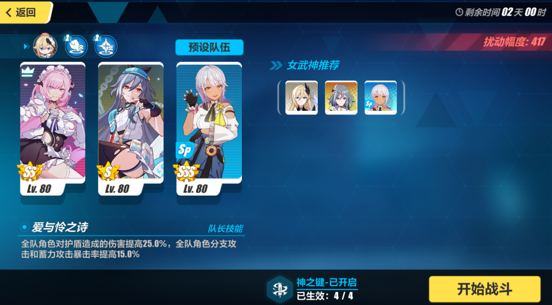 简称对应的角色和敌方单位:「爱莉」——「粉色妖精小姐♪」,「识律」——「识之律者」,「卡萝尔」——「甜辣女孩」。