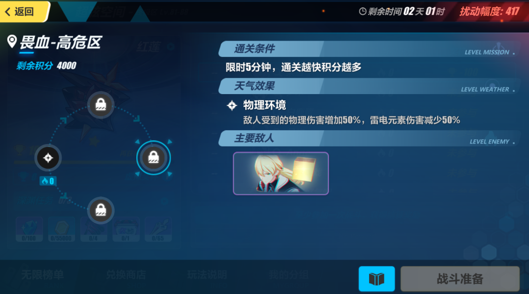 ◆ 主区天气-环境:畏血-物理环境,敌人受到的物理伤害增加50%,雷电元素伤害减少50%