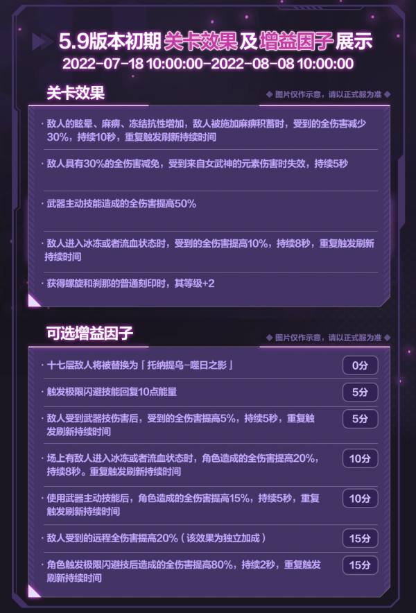 在5.9版本中的天气,当期UP角色为V2V,所以5.9版本的乐土怪物属性偏向于“量子”我没有意见,大家拿到了新角色想要在当期获得良好体验是没问题的,