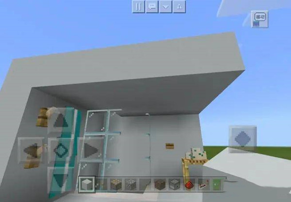 1、挖一个4*5的区域作为淋浴间,用白色混凝土来铺地和搭墙,只要做两面3格高的墙壁即可。