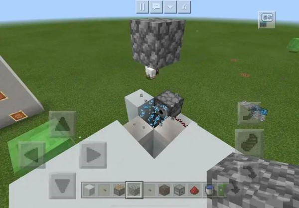 8、点击按钮石头就会往下挖,盔甲架就会掉下去产生水源。