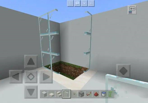 2、继续往地面下挖2*3的区域,另外两面搭建楼梯,安装上玻璃。