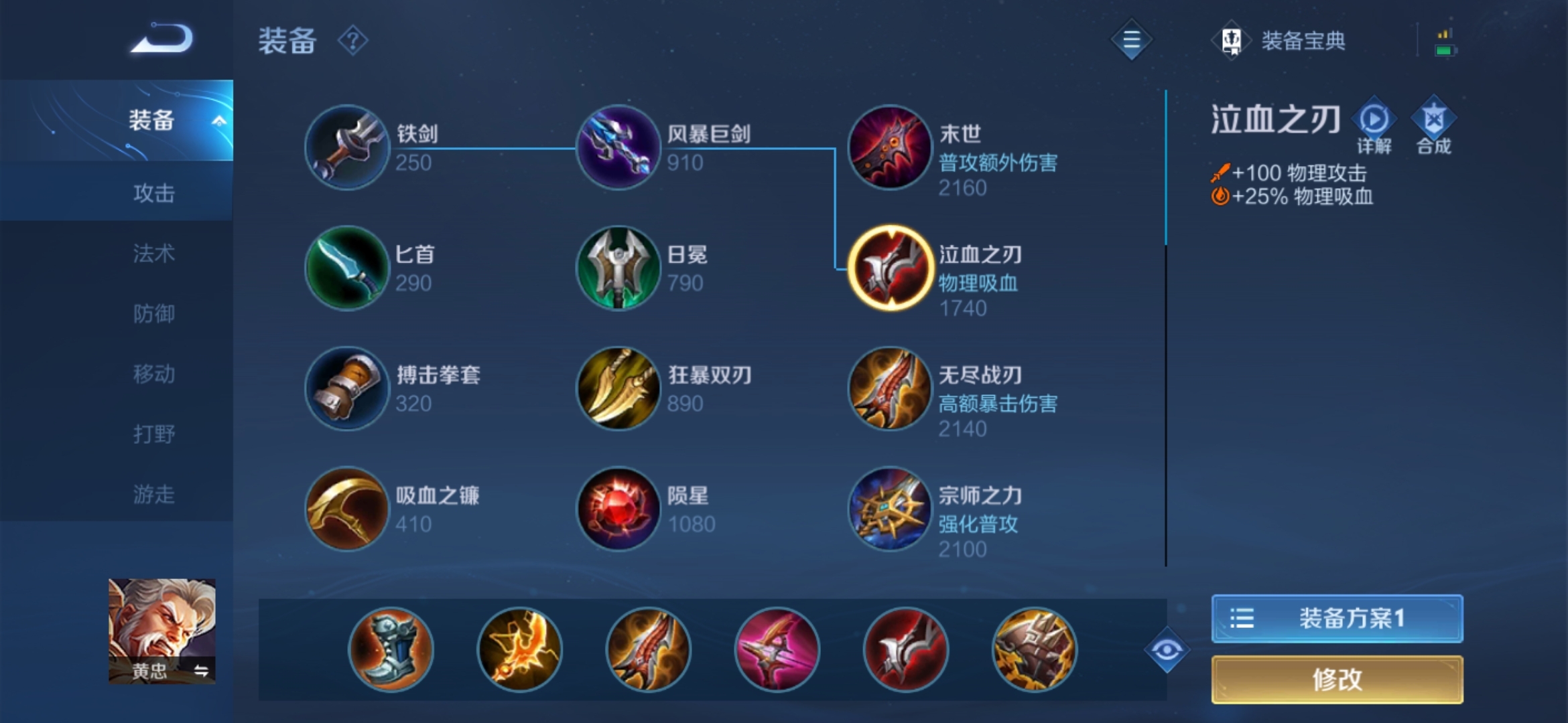 出装的话就是攻速鞋,电刀,无尽战刃,破晓,吸血刀,最后一件看阵容来出如果对面刺客多的话伤害又高就出一件肉装如果对面很脆又有辅助跟着你保你的话就可以出苍穹开了苍穹之后就换复活甲然后再预购名刀。