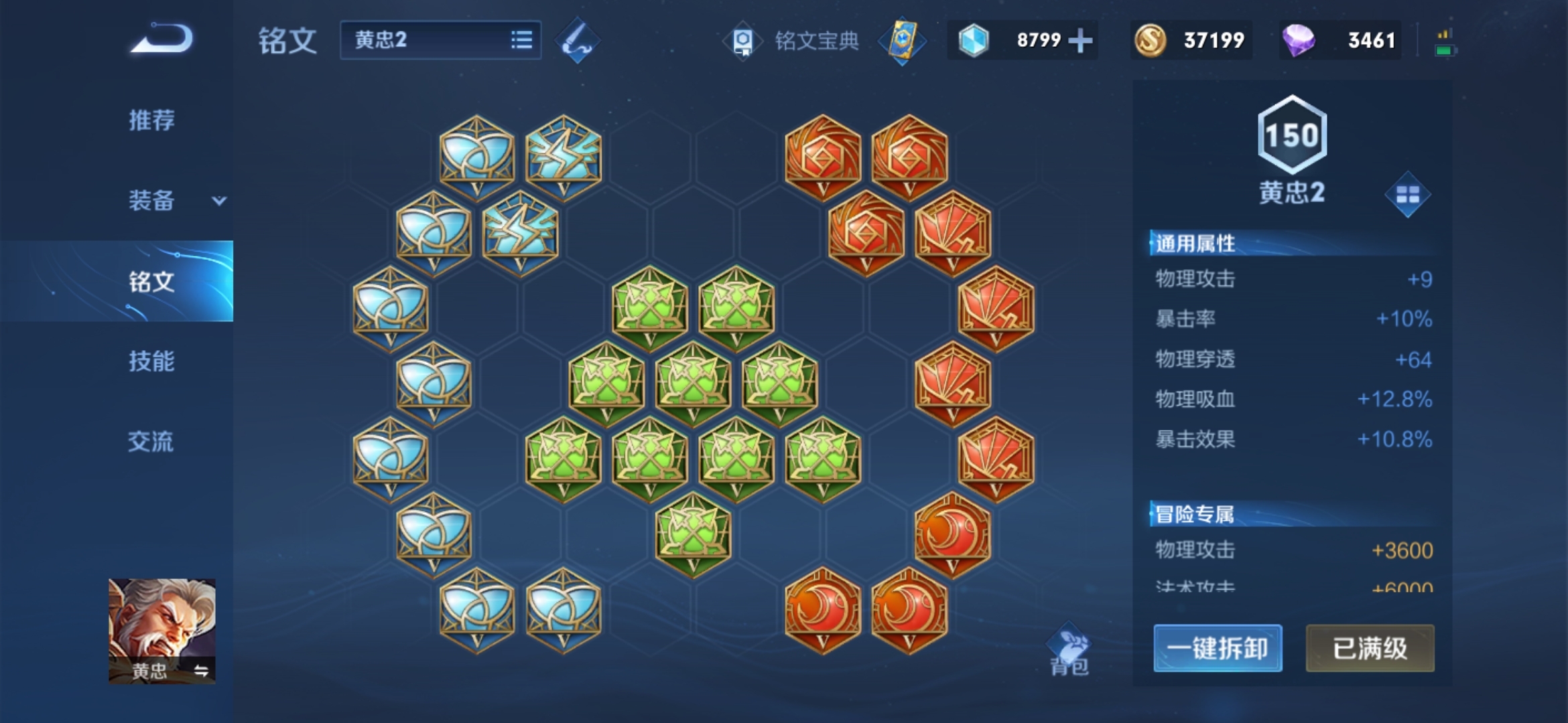 首先是黄忠他的被动,以前他的被动是每次普攻增加8点攻击和1.5%的暴击率(炮台时效果翻倍)现在呢他每次普攻增加12点攻击和1.5%的暴击率也是炮台时效果翻倍,这个调整让黄忠在对线时有挺高的提升前期可以和大多数射手一决高下,还能更快的发育到强势期。一技能,黄忠提升自身的移速,持续1.5秒,如果是在架起状态,可瞬间取消架起状态。被动:增加黄忠60点物理攻击。二技能,黄忠向指定地点放置地雷同时获得视野效果,如果敌人踩中的话可以造成额外的减速效果和破甲效果同时自身获得一个护盾(地雷最多存在两个)大招,黄忠架起大炮(自身不能移动)增加180点物理防御和法术防御持续15秒然后他只有7次攻击机会用完后取消架炮。 出装和铭文推荐