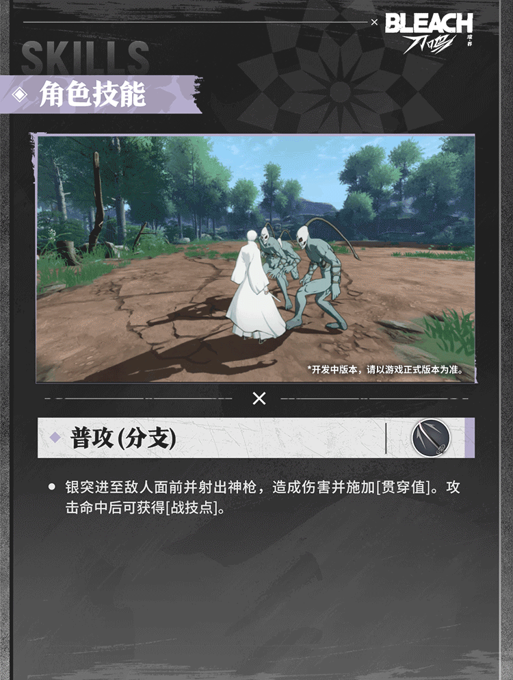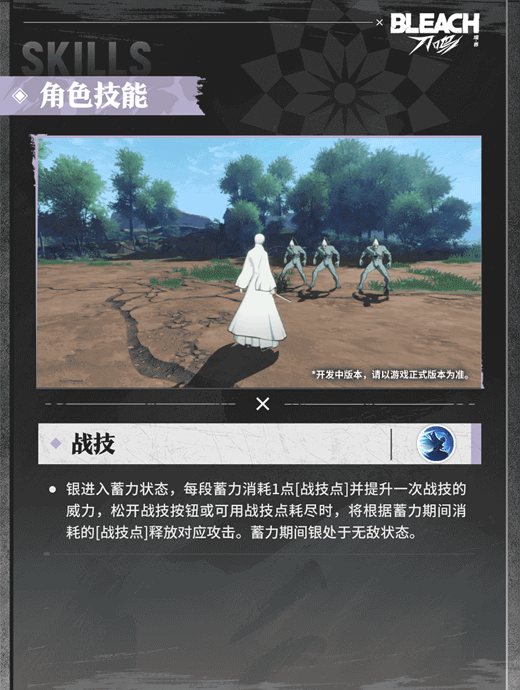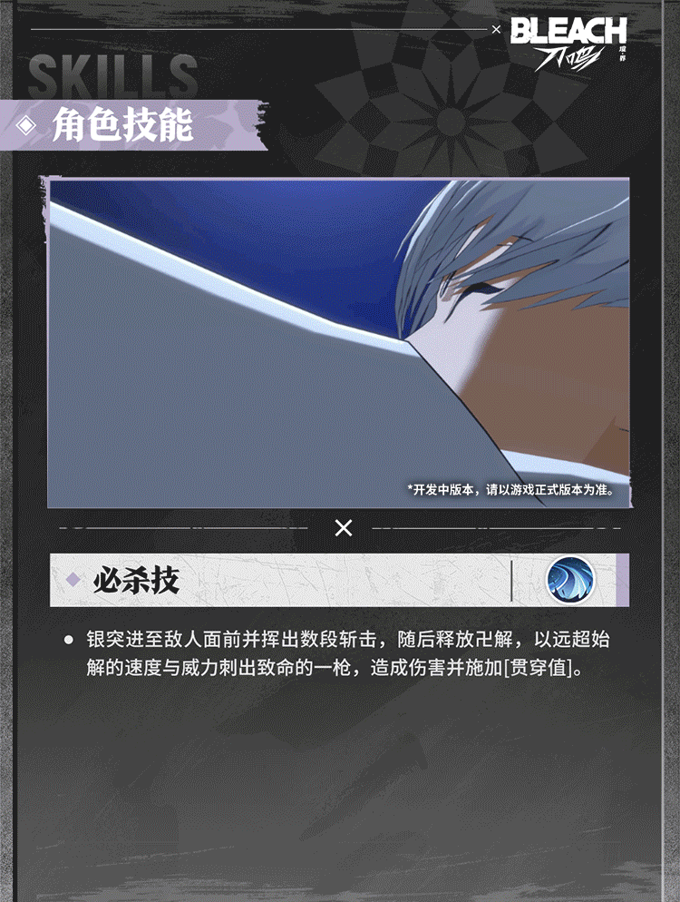 游戏中的市丸银是突系强攻角色,拥有多种连击方式与位移技能控制节奏,积攒灵压可蓄力释放威力强大的战技。点击下方图片,一起查看市丸银的技能详情吧!