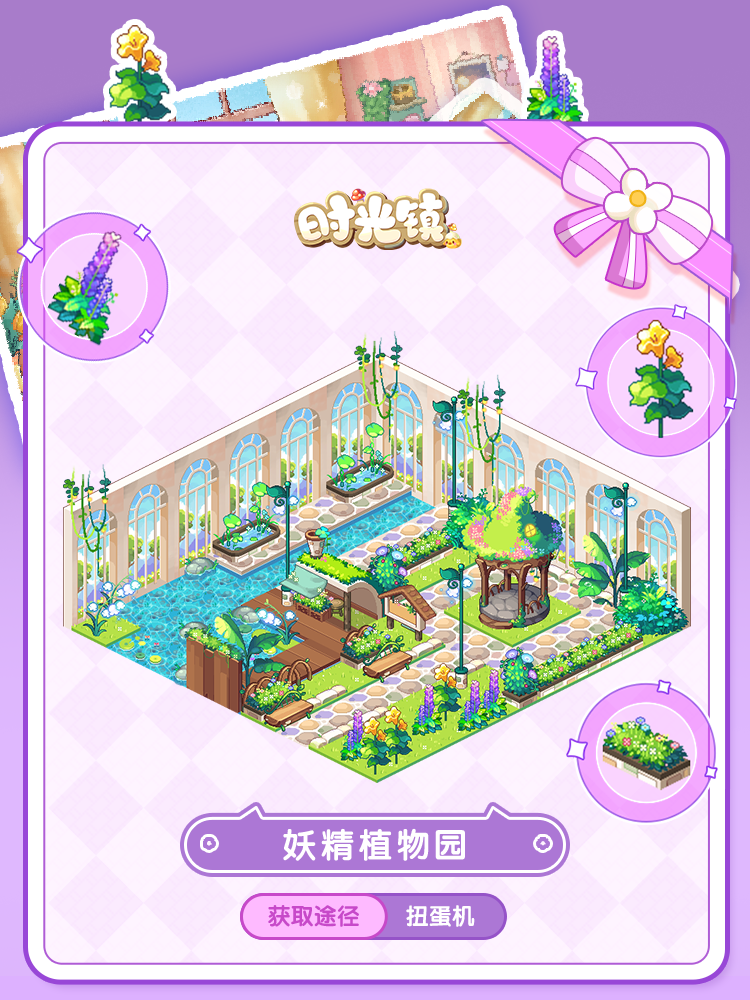 各位居民可通过扭蛋机获取【妖精植物园】家居套系哦!让缤纷色彩簇拥肆意的盛夏吧~