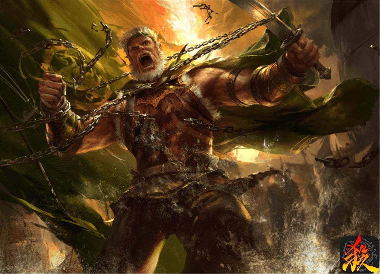 最后说一下在三国杀移动版中界限突破改动最大的武将吧,想必没有之一,如果立马能想到的一看你就是老于禁了。可以说界于禁的出场似乎真的把一个武将改到了连亲爹都认不出来的地步。除了原画中还是那个唯一不戴头盔的五子良将之外,小锋找不到任何一点跟原来的于禁有相似之处。于禁的武将晋升之路在三国杀中也是出了名的坎坷,老“毅重”被公认为防守神技但由于太过稳重从而拖慢游戏速度而惨遭黑手。随之而来的就是那个没有人愿意用的“节钺”,改技能之后于禁人气惨遭下滑,这也使得界限突破不得不再次重新考虑如何让我们的五子良将大显神威,于是便有了今天的界于禁。技能十分简单,但强度确实配得上史诗,不扒光就补满,一个操作直接起爆。虽然面目全非,但却一飞冲天!