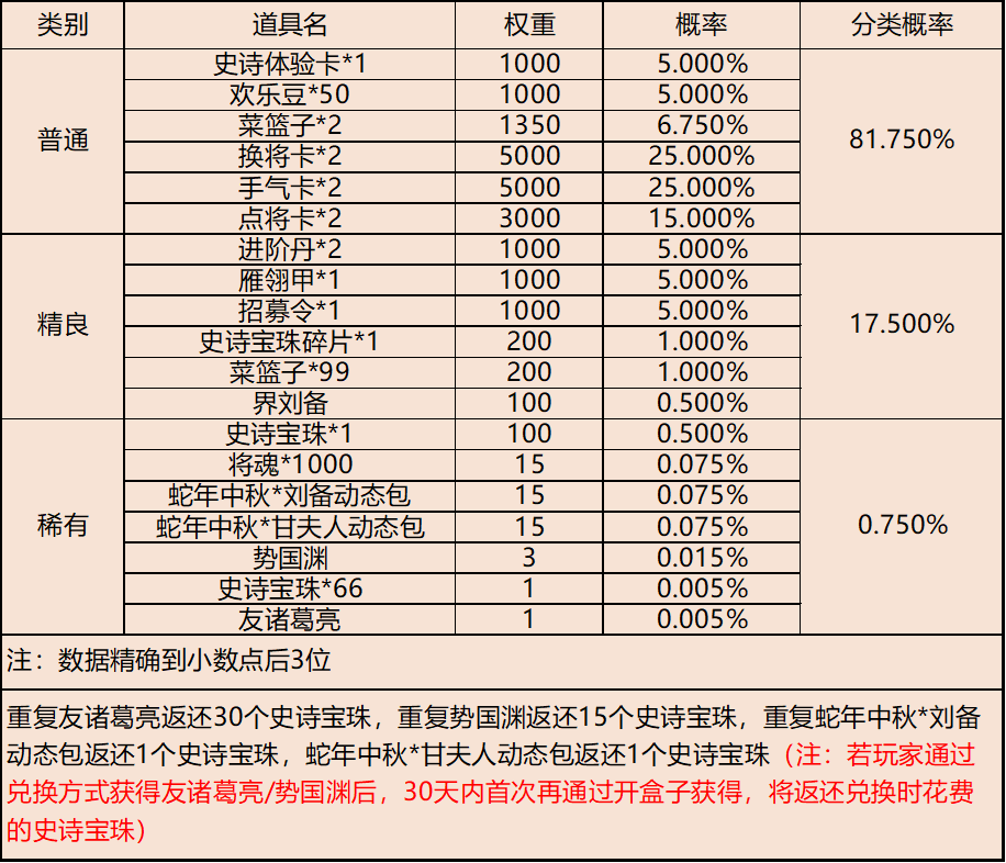 史诗体验卡*5=蛇年中秋*刘备试用3天,限兑3次