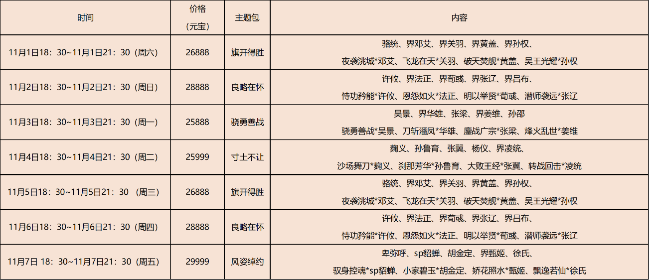 时间:11月1日-11月7日