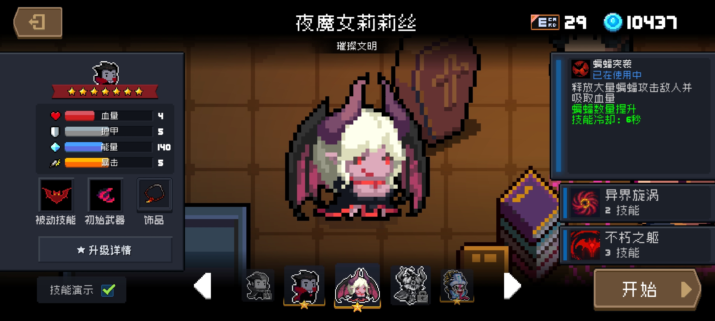 元气骑士里已经推出了5个女性角色,分别是法师、牧师、死灵法师、精灵、吸血鬼(应该算是吧)。