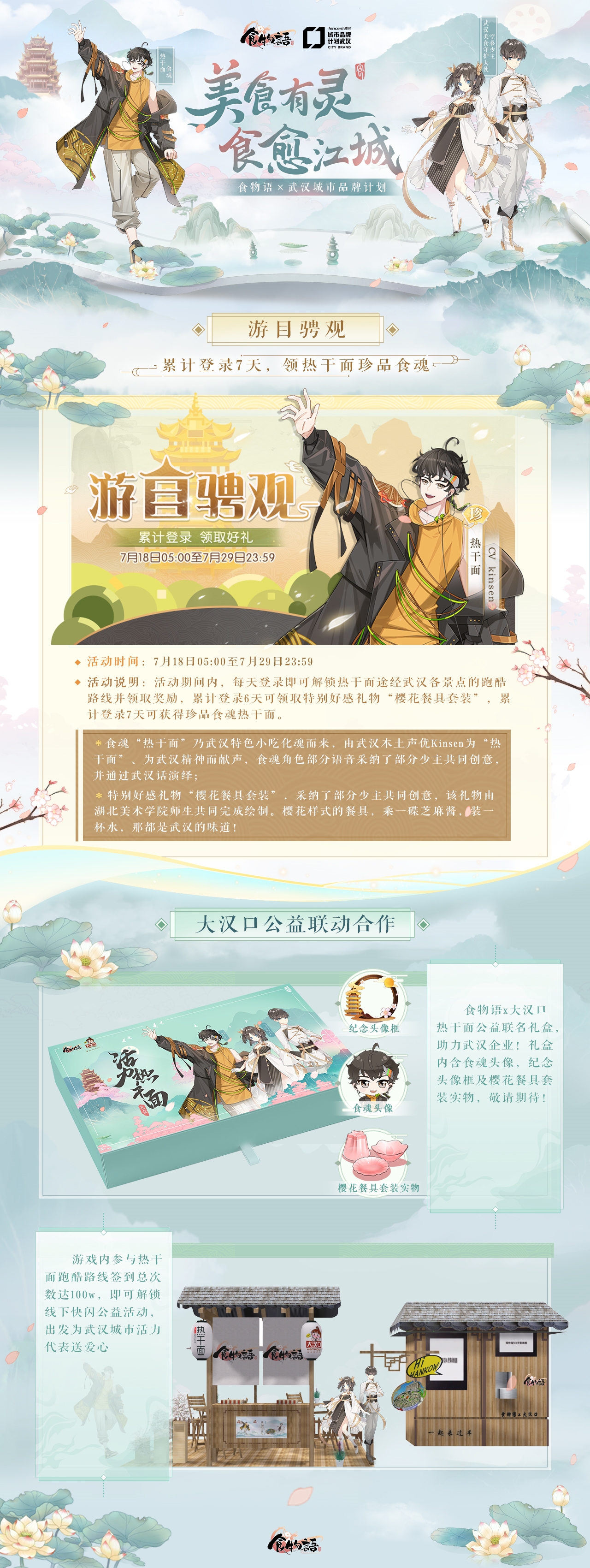 ☆武汉城市品牌计划☆《食物语》全新限时登录活动#游目骋观# 即将于7月18日开启!累计登录7天即可领取珍品食魂【热干面】#热干面食魂#