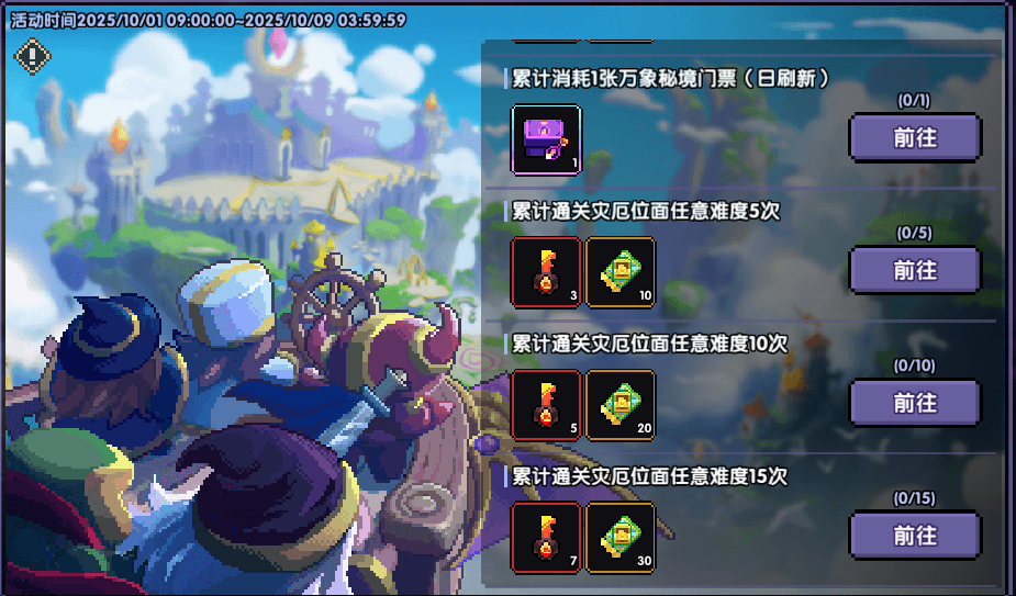 活动期间完成指定任务即可获得“灾厄燃料袋”、“侠·灾厄密钥”、“万象秘境门票”等奖励