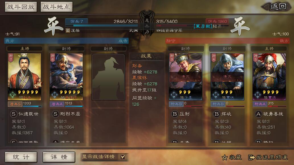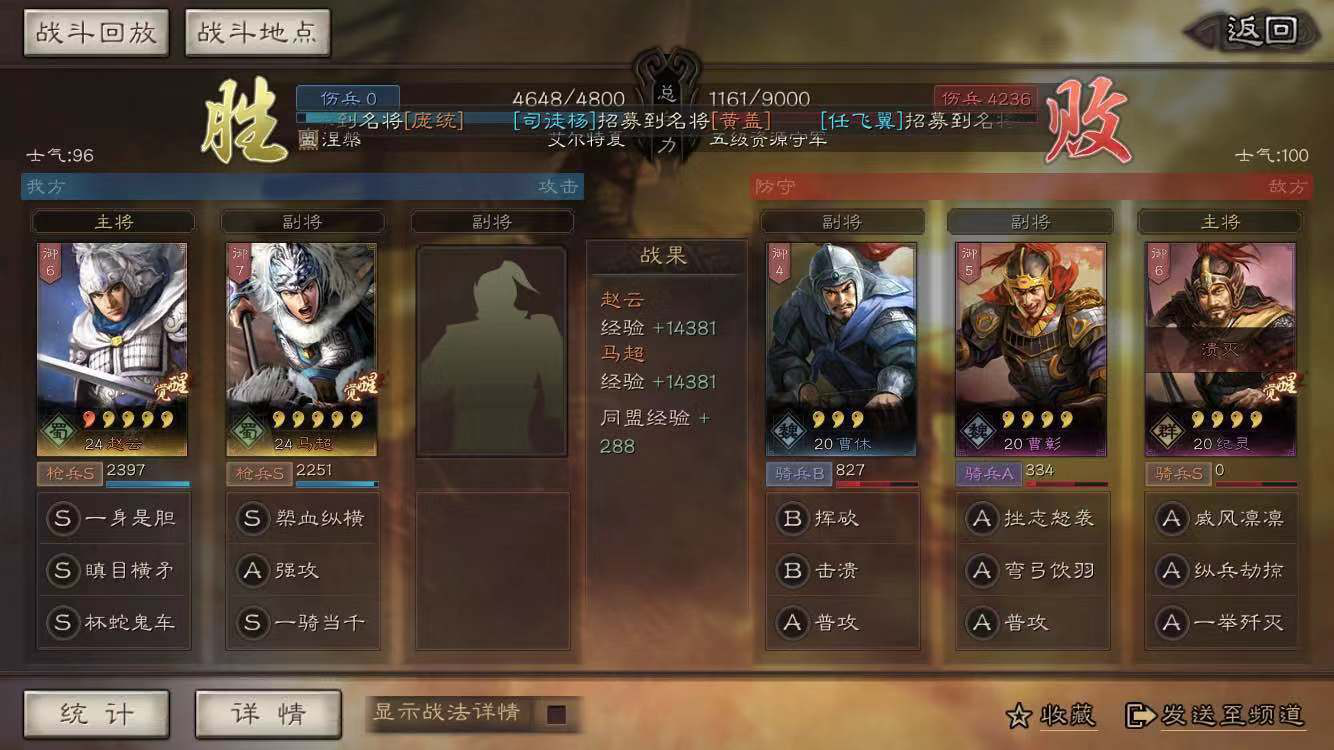 同时,这两个武将也是后期组成蜀国五虎队的核心武将,只要在C足够的情况下,再加一个武将即可成型,转型也非常方便。