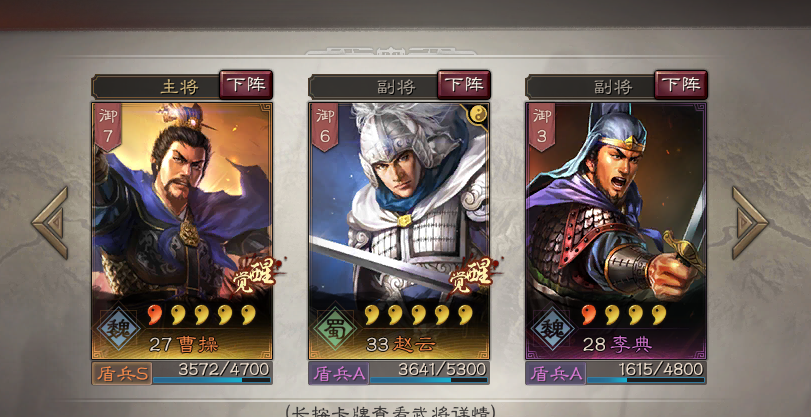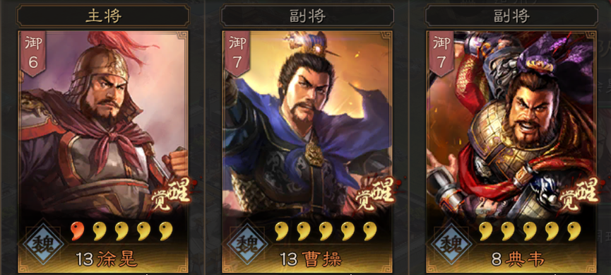 通常指曹操为核心,搭配魏国另外两人组成的盾兵队伍,一般是有典韦、许褚、徐晃、于禁等组成,为游戏最强队伍之一。