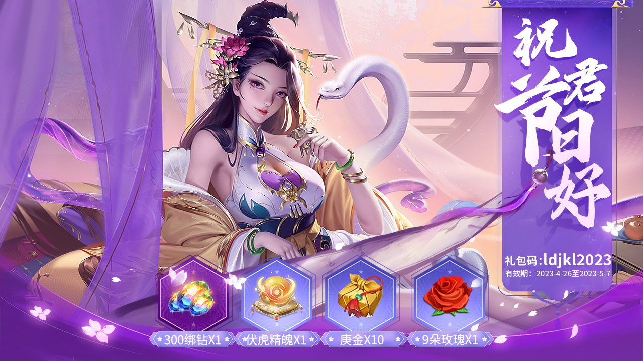 礼包内容:300绑钻*1 伏虎精魄*1 庚金*10 9朵玫瑰*1